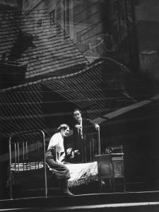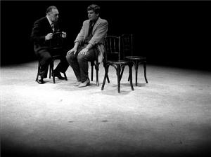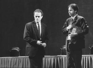 Zásnuby ve snu 27.03.1994 prolog opery s projekcí Dostojevského rukopisu, vpravo J.Horáček(Archivář)