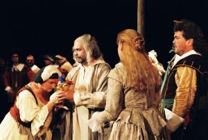 Boris Godunov 14.05.1996 M. Kremerová (Krčmářka), J. Šokalo (Varlaam), J. Horáček (Strážník)
