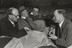 Alchymista - 08.11.1932 ze zkoušky: František Götz, Vladislav Vančura, Eduard Kohout, Jindřich Honzl