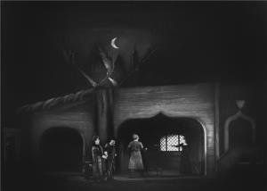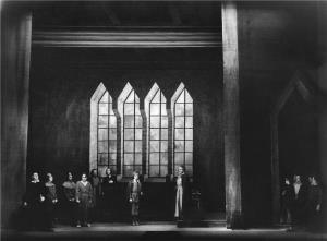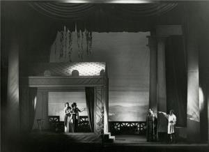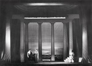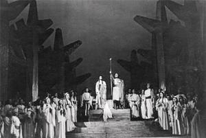Král Roger - 21.10.1932, sborová scéna; v pozadí: Zdeněk Otava (Roger II.), Ada Nordenová (Roxana)