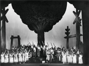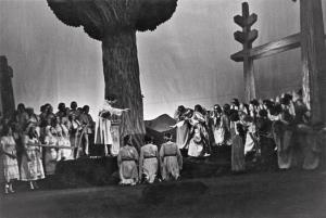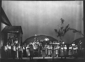 Král Roger - 21.10.1932, sborová scéna; v pozadí: Z. Otava, A. Nordenová, M. Krásová, J. Huml