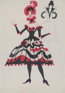 Hry o Marii - 07.03.1969, Marcel Pokorný - skica kostýmu (Děvče z kabaretu?)