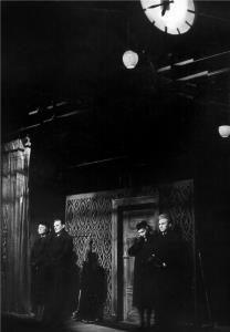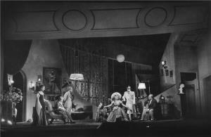 Návštěva Gérarda Philipa na představení Loupežníka 20.3.1955, společné foto s herci ND