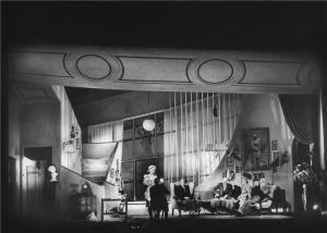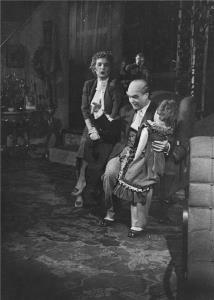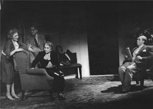 Pygmalion - 16.02.1946 Jiřina Šejbalová (Líza Doolittlová, sedící), Eduard Kohout (Profesor Higgins)