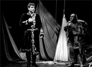 Hamlet 21.03.2002 L. Novák, K. Džuganová (sbor), G. Ibragimova (Gertrude), J. Sulženko (Claudius)