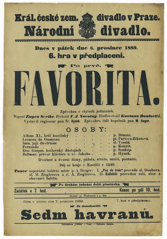 Favorita - 06.12.1889, divadelní cedule z premiéry