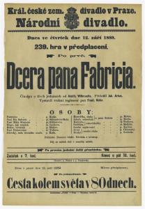 Dcera pana Fabricia - 12.09.1889, divadelní cedule z premiéry