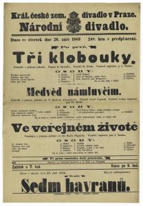 Tři klobouky - 26.09.1889, divadelní cedule z premiéry